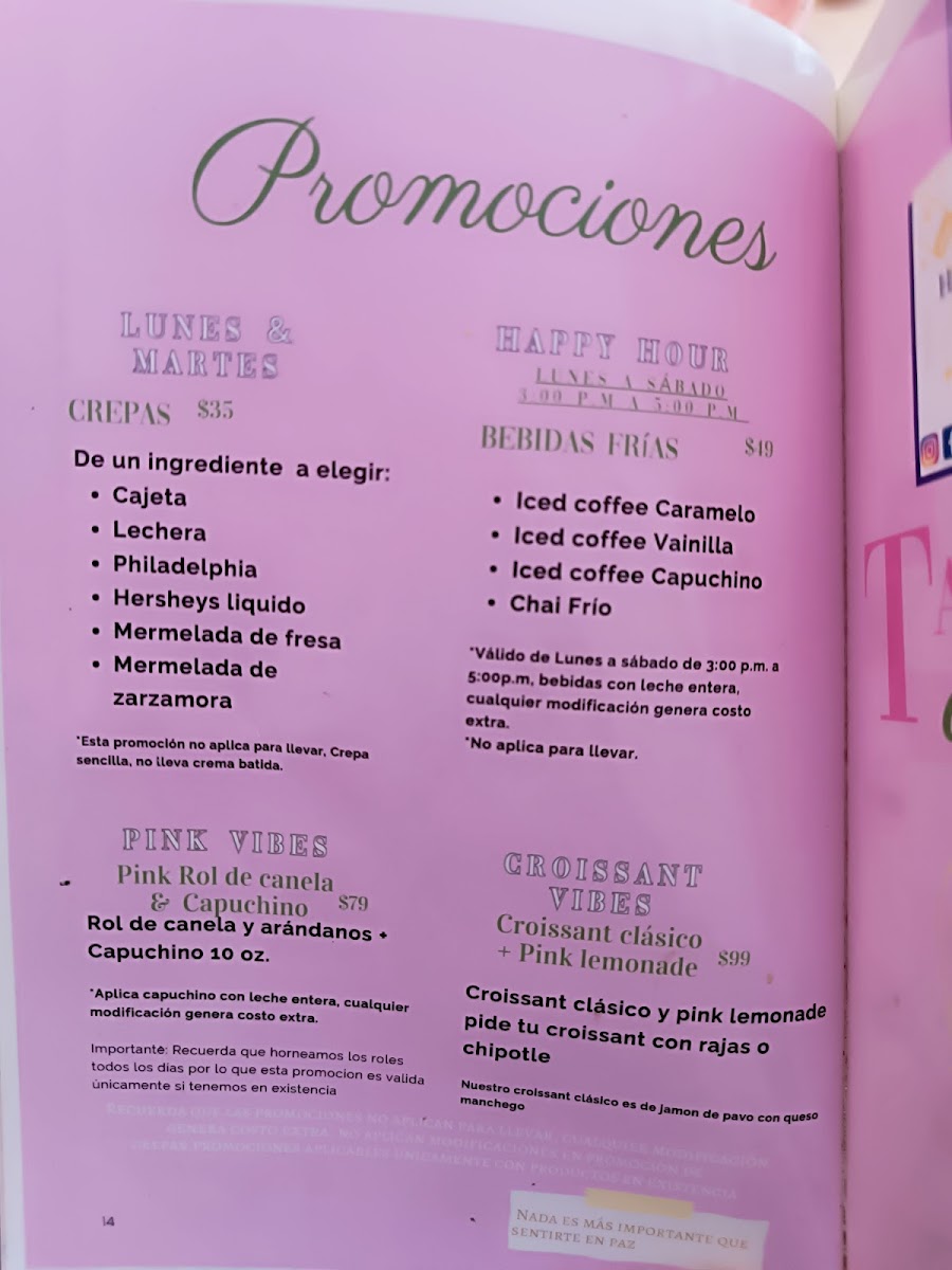 The menu features a variety of visually appealing dishes, all served in shades of pink, although some diners express curiosity about this playful theme. Highlights include a selection of delicious beverages and tasty meals that cater to various palates.